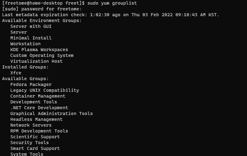 sudo yum grouplist