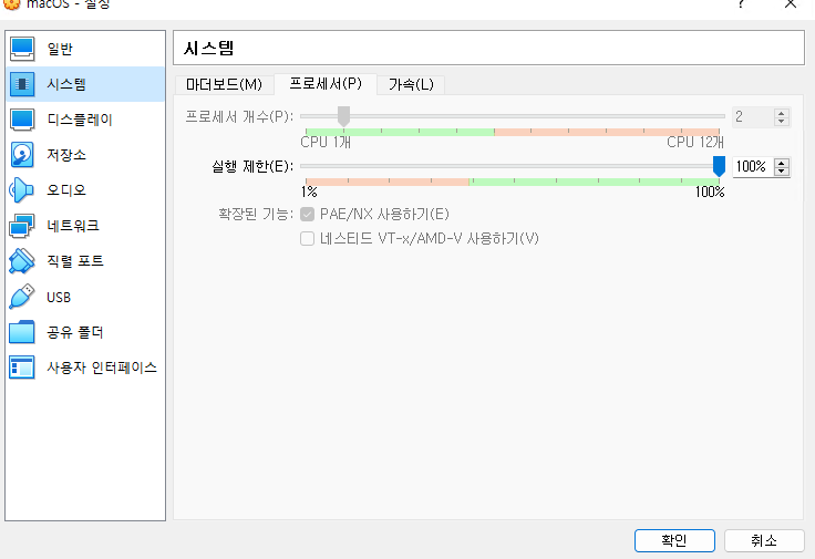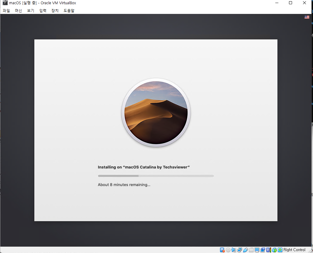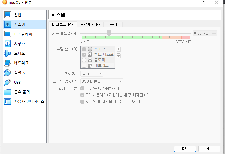 설치 완료 후 osx 해상도는 버츄얼 박스 옵션을 바꾸어야 함